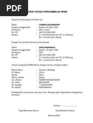 297 Contoh Surat Kuasa Download Doc Cara Membuat from celticstown.com 5 contoh surat kuasa yang baik dan benar untuk berbagai. Mesin yamaha, mx king 150 cc 2015 hitam tamrin badaruddin bk1223dw 112233445566 99555666444 Sekali lagi kami informasikan, silahkan edit contoh surat kuasa pengambilan bpkb motor dan sesuaikan data sesuai dengan kebutuhan. Beawa, 23 april 1984 pekerjaan : Surat kuasa pengambilan bpkb fif By posted on june 22, 2020. Beawa, 23 april 1984 pekerjaan : Download contoh surat kuasa pengambilan bpkb motor dalam format word disini;